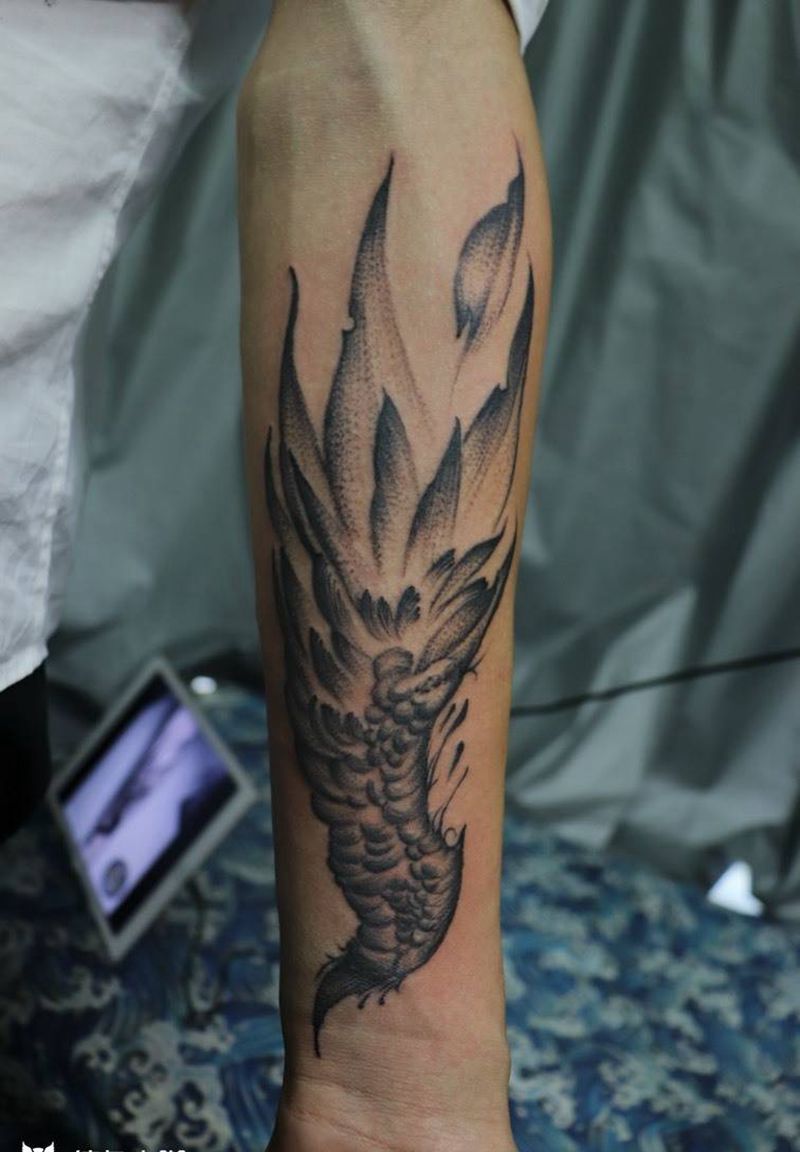 • T网红王老大花腿龙纹身图片_腿部新传统纹身图案