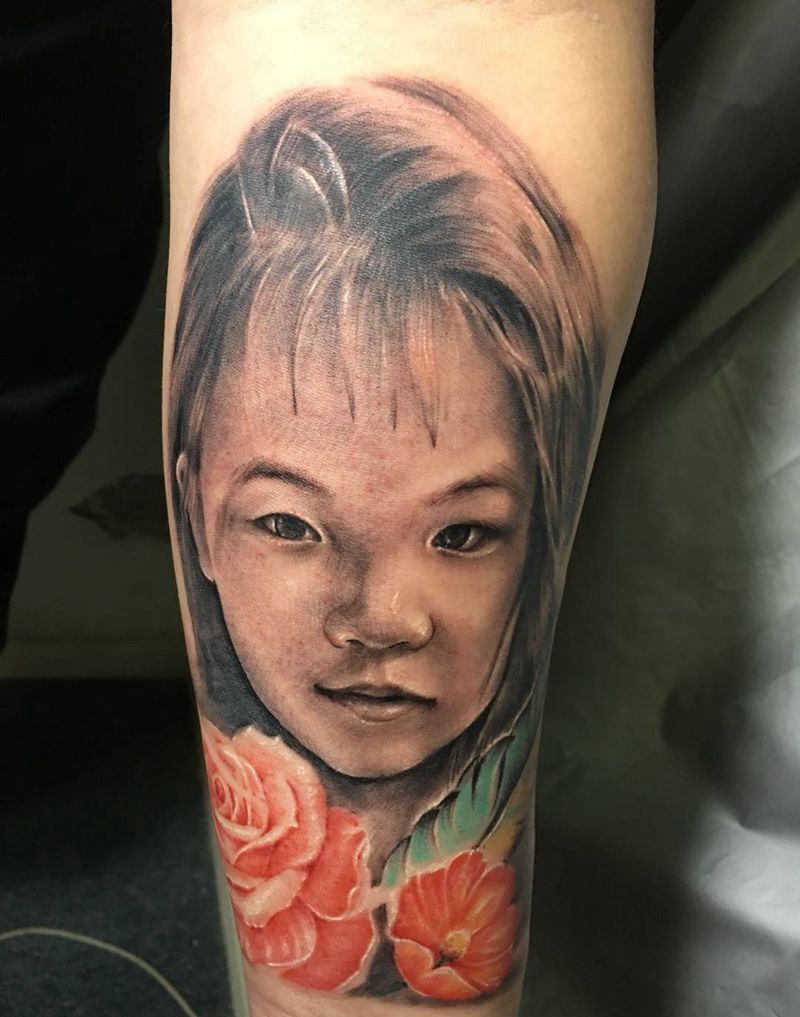 当前位置: 首页 >天津市纹身店-天津·罕古刺青纹身图案>小情人肖像纹身图片_