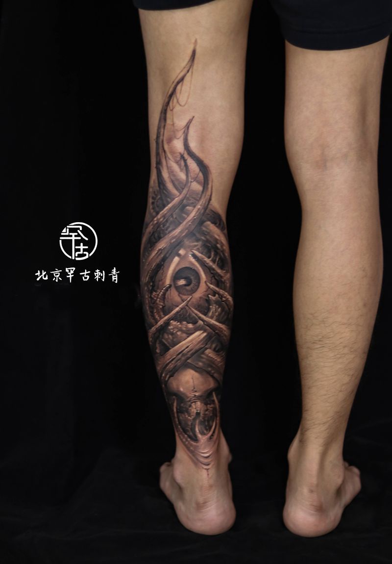 欲·望纹身图片_腿部欧美写实生化纹身图案