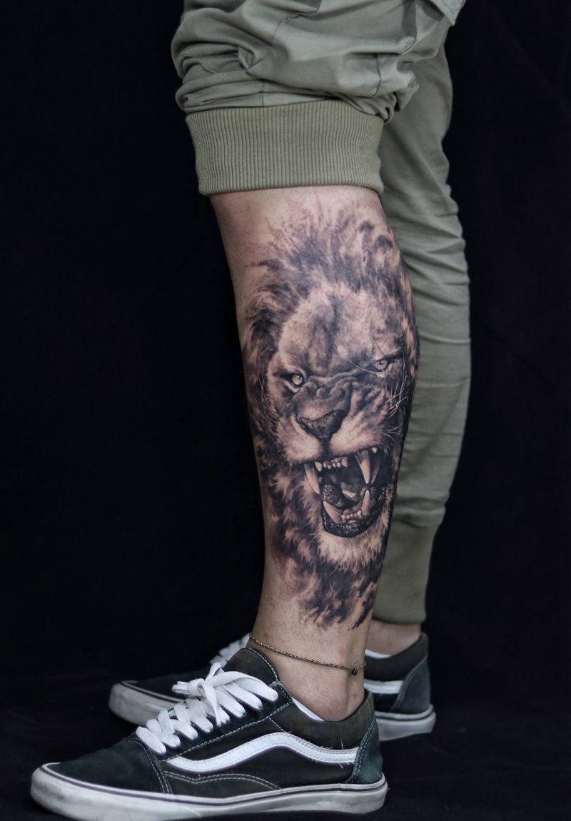 当前位置: 首页 >天津市纹身店-天津·罕古刺青纹身图案>狮·小武作纹身图片_腿部纹身图案