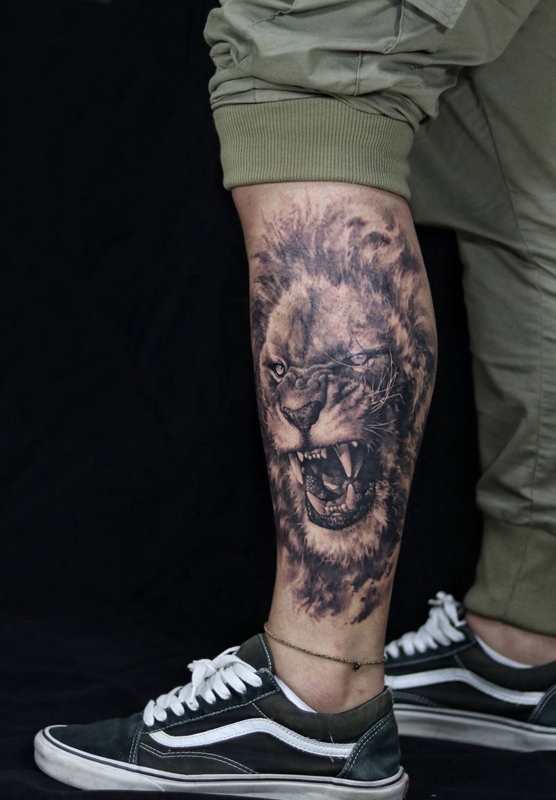 当前位置: 首页 >天津市纹身店-天津·罕古刺青纹身图案>狮·小武作纹身图片_腿部纹身图案