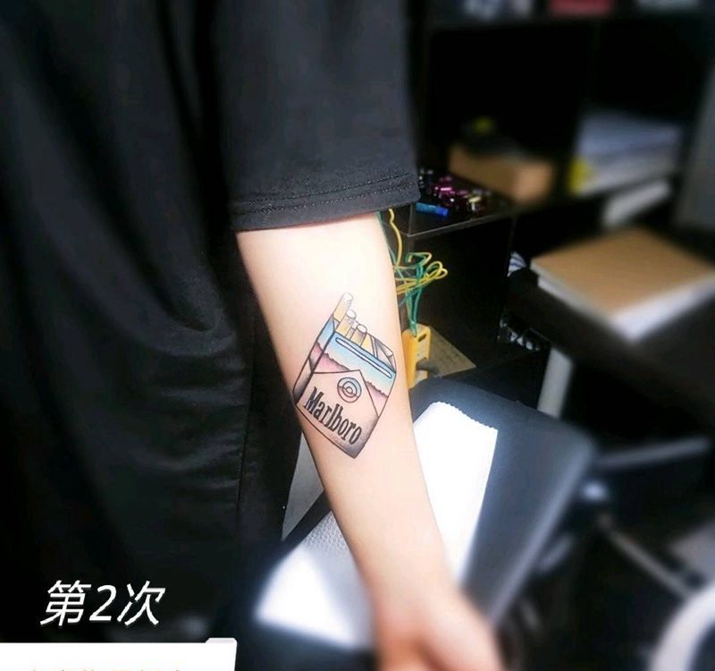 当前位置: 首页 >天津市纹身店-尚刺青纹身工作室纹身图案>万宝路香烟,烟盒纹身图片_手臂New School纹身图案