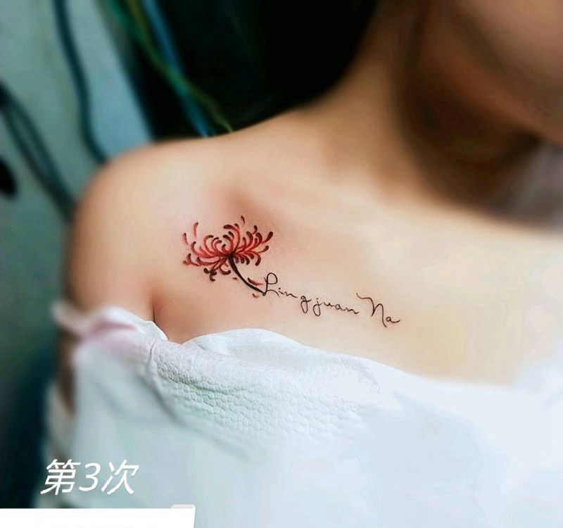 彼岸花纹身图片_胸部花纹身图案