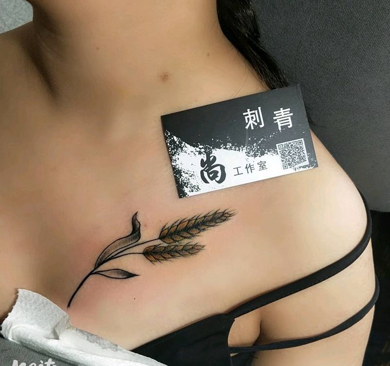 小麦穗纹身图片_胸部新传统纹身图案