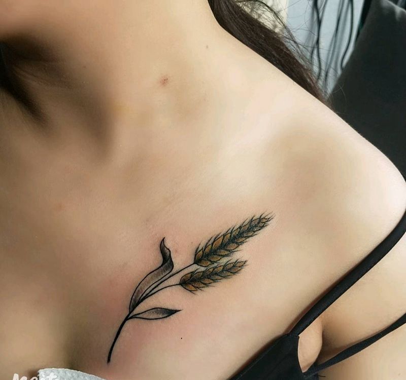 小麦穗纹身图片_胸部新传统纹身图案