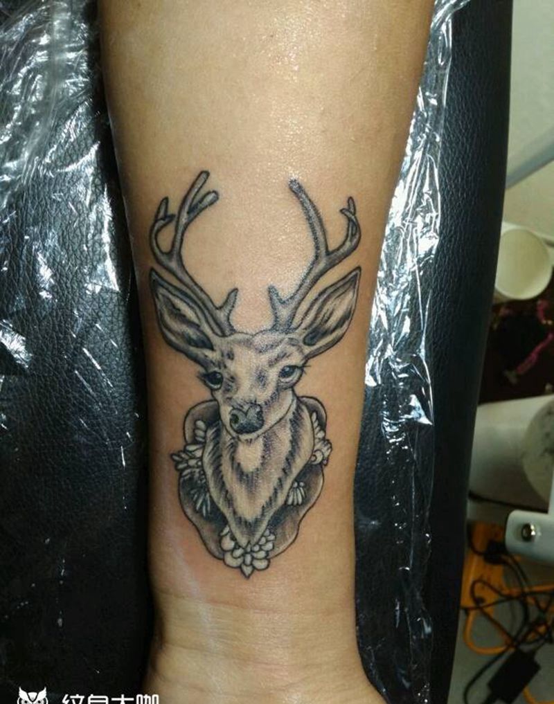 麋鹿纹身图片_手臂动物成品纹身图案