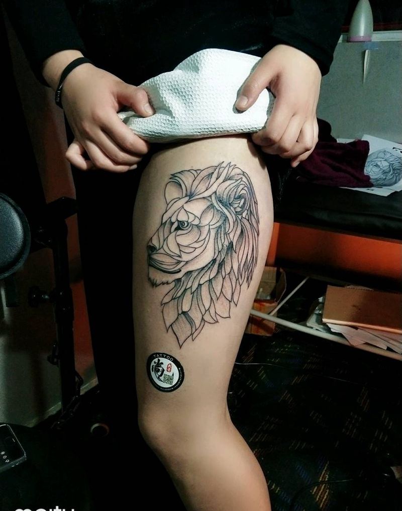 当前位置: 首页 >天津市纹身店-尚刺青纹身工作室纹身图案>狮子纹身图片_腿部图腾点刺纹身图案