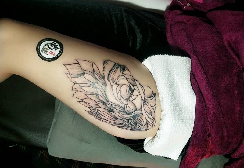 当前位置: 首页 >天津市纹身店-尚刺青纹身工作室纹身图案>狮子纹身图片_腿部图腾点刺纹身图案