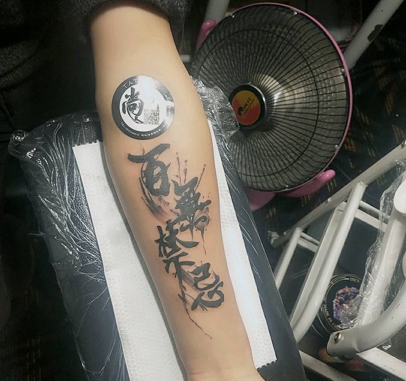 水墨百无禁忌纹身图片_手臂水墨纹身图案