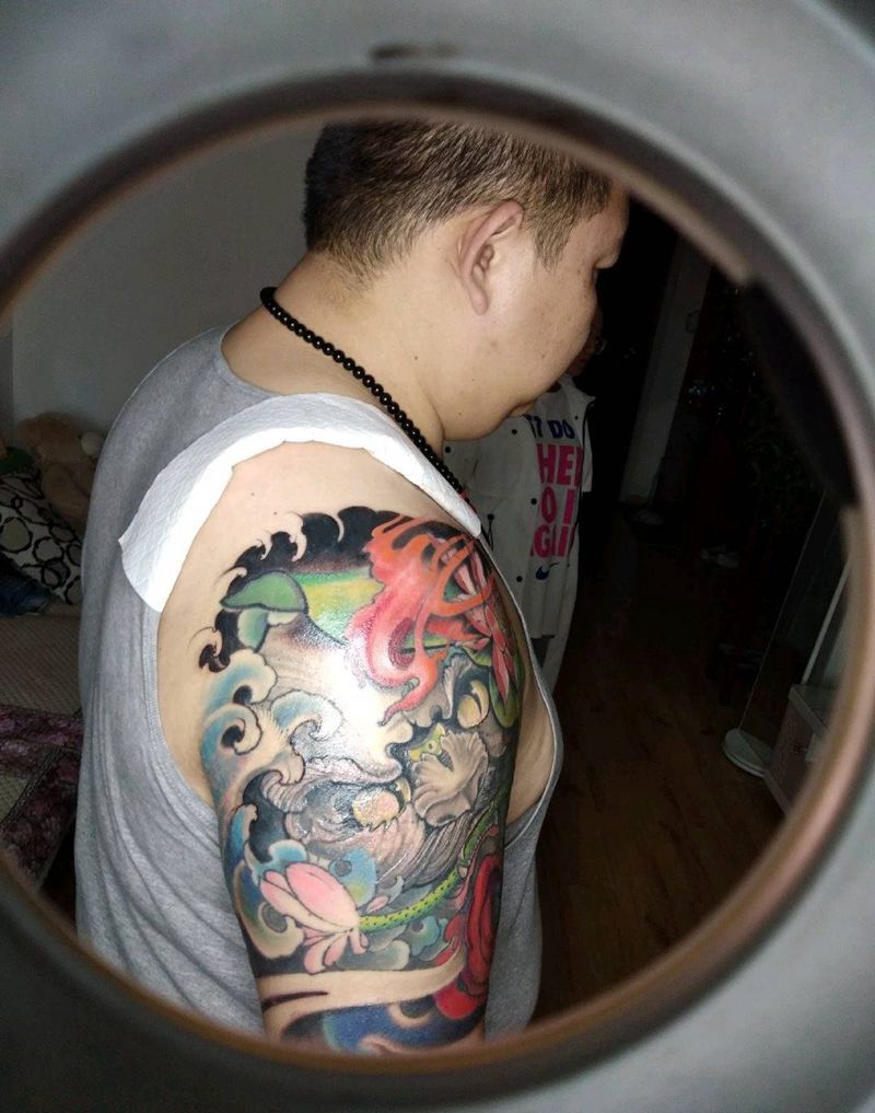 当前位置: 首页 >天津市纹身店-滨海纹身科纹身图案>老活修改纹身图片_手臂新传统福狮纹身图案