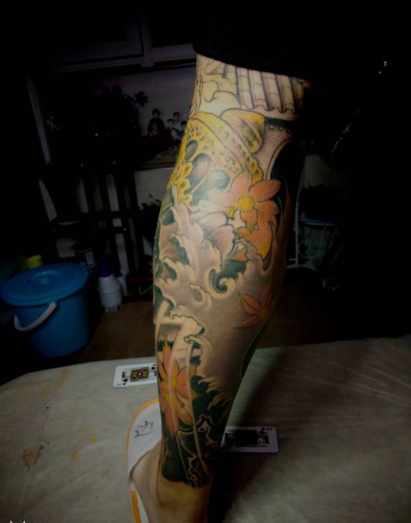• T网红王老大花腿龙纹身图片_腿部新传统纹身图案