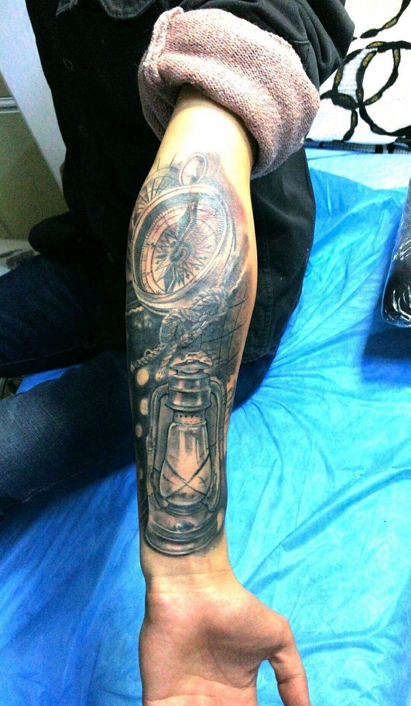 当前位置: 首页 >天津市纹身店-滨海纹身科纹身图案>早期修改作品纹身图片_手臂欧美写实马灯指南针纹身图案