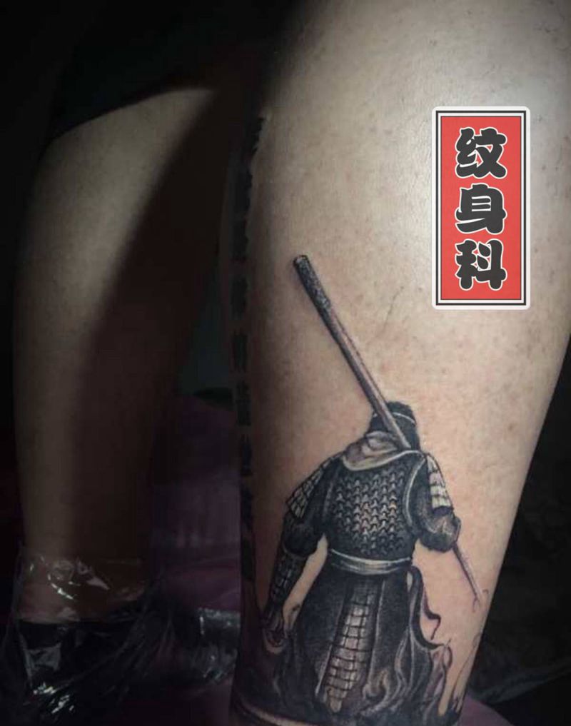 至尊宝纹身图片_腿部新传统水墨至尊宝大话西游纹身图案