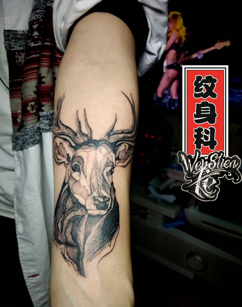 当前位置: 首页 >天津市纹身店-滨海纹身科纹身图案>兄弟同款鹿头纹身图片_点刺鹿纹身图案