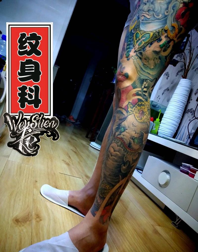 当前位置: 首页 >天津市纹身店-滨海纹身科纹身图案>花腿最新进度纹身图片_腿部新传统象神黄财神花腿纹身图案