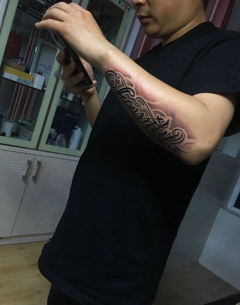 当前位置: 首页 >天津市纹身店-滨海纹身科纹身图案>设计奇卡诺纹身图片_手臂花体字奇卡诺花体字纹身图案