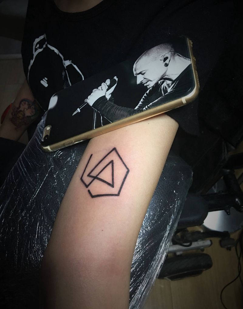 当前位置: 首页 >天津市纹身店-滨海纹身科纹身图案>纪念偶像纹身图片_手臂几何图腾悼念纹身图案