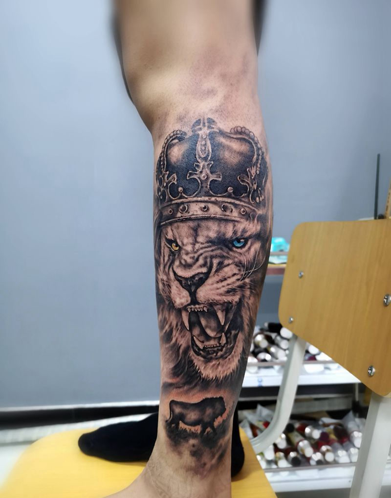 当前位置: 首页 >天津市纹身店-久违刺青纹身图案>狮子大王纹身图片_腿部欧美写实纹身图案