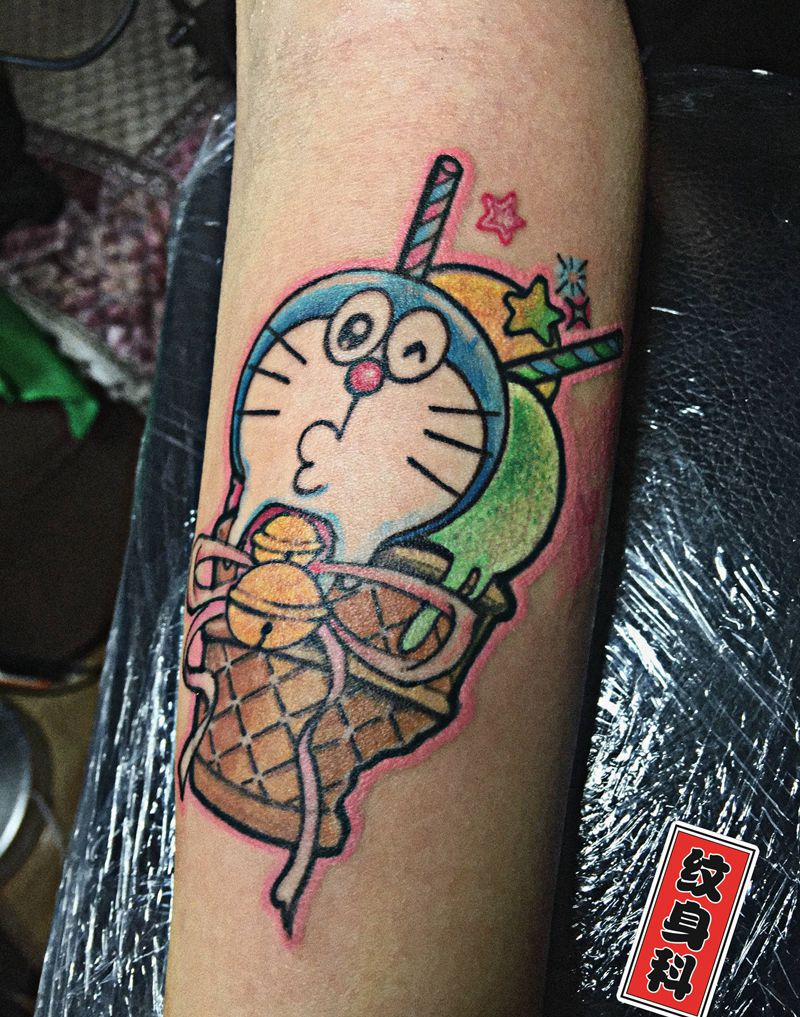 又一个生日礼物,彩色小叮当~冰纹身图片_手臂水墨New School哆啦A梦小叮当彩色纹身图案