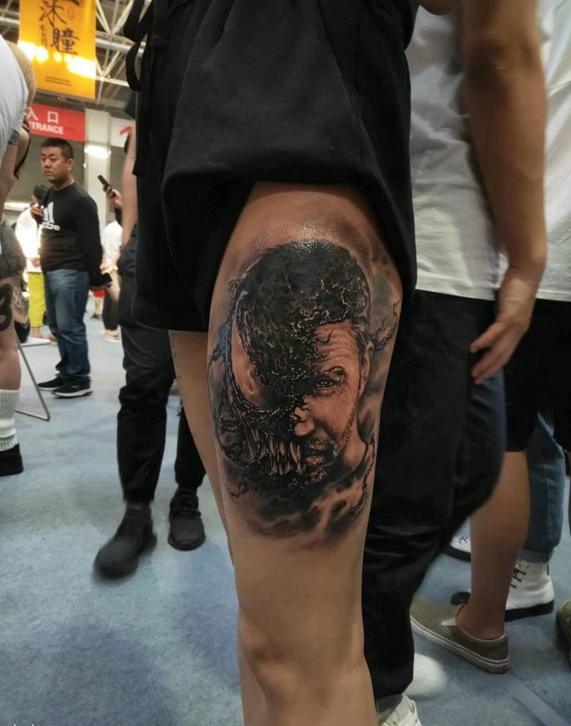 展会现场作品纹身图片_腿部欧美写实纹身图案