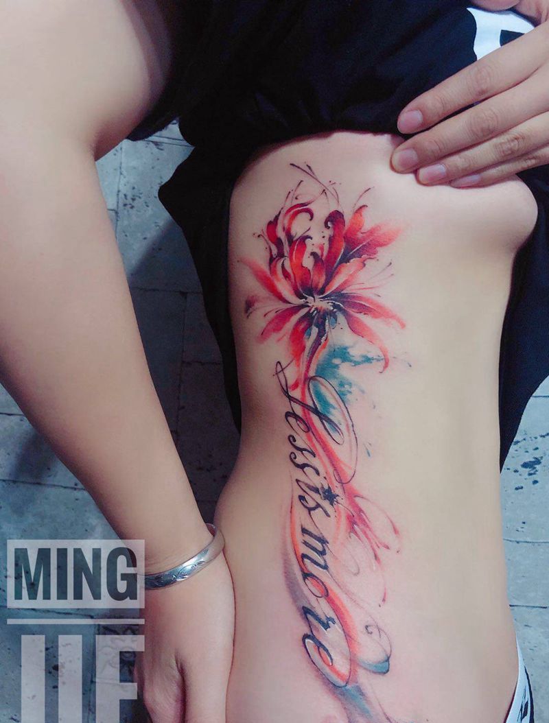 彼岸花纹身图片_腹部水墨水彩纹身图案