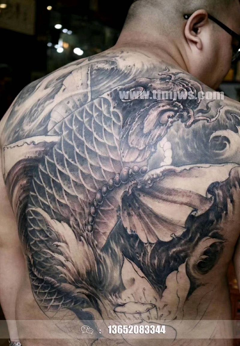 当前位置: 首页 >天津市纹身店-天津冥界纹艺纹身图案>满背鱼纹身图片_