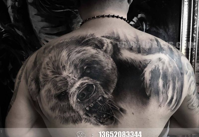 雄霸天下纹身图片_成品背部写实欧美原创动物纹身图案