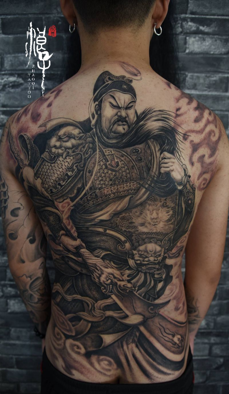 关公纹身图片_背部新传统关二爷关公纹身图案