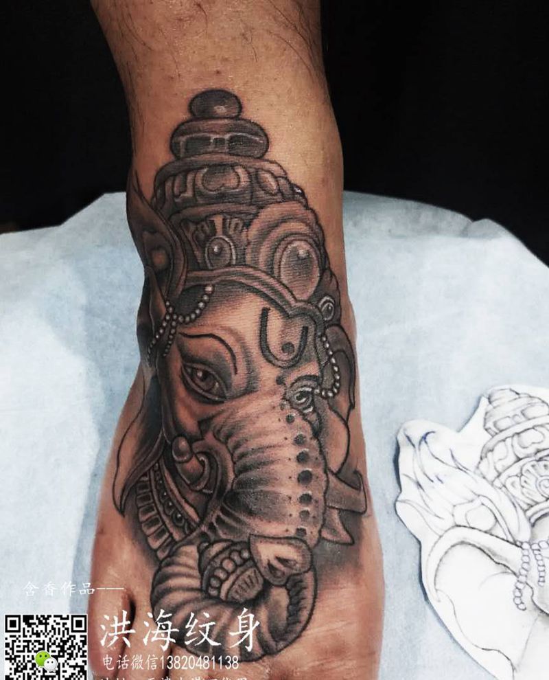 当前位置: 首页 >天津市纹身店-洪海纹身纹身图案>脚面象神纹身图片_脚部腿部纹身图案