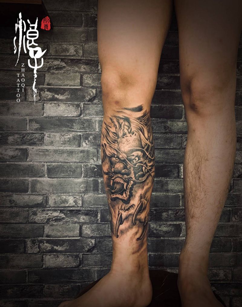 显圣真君纹身图片_腿部新传统纹身图案