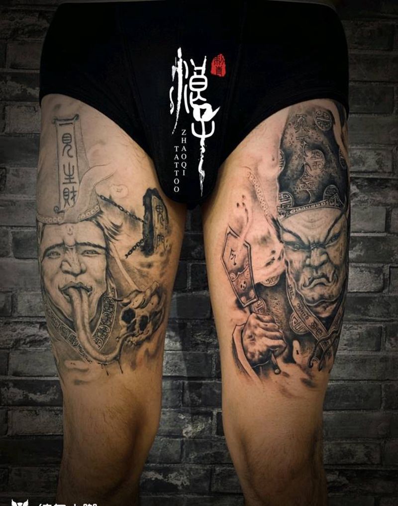 黑白无常Ⅰ纹身图片_腿部新传统黑白无常纹身图案