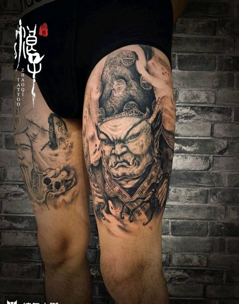 黑白无常Ⅰ纹身图片_腿部新传统黑白无常纹身图案