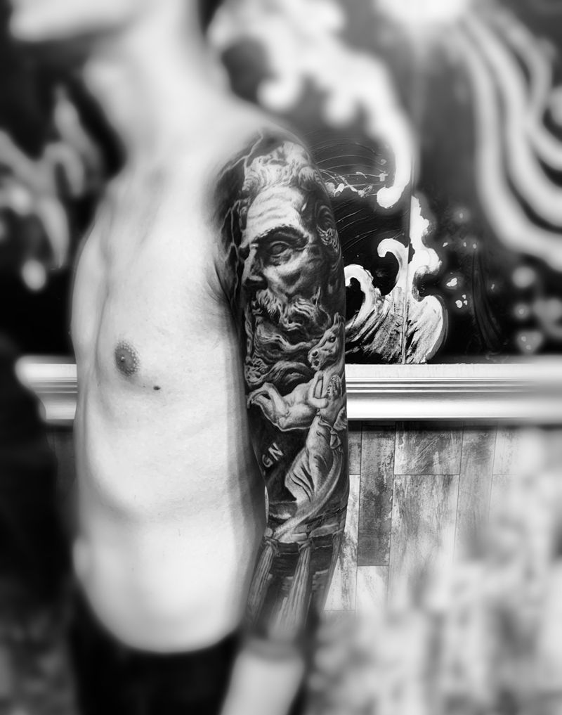 波塞冬纹身图片_臀部手臂欧美写实纹身图案