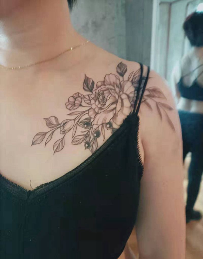 素花纹身图片_肩部New School纹身图案
