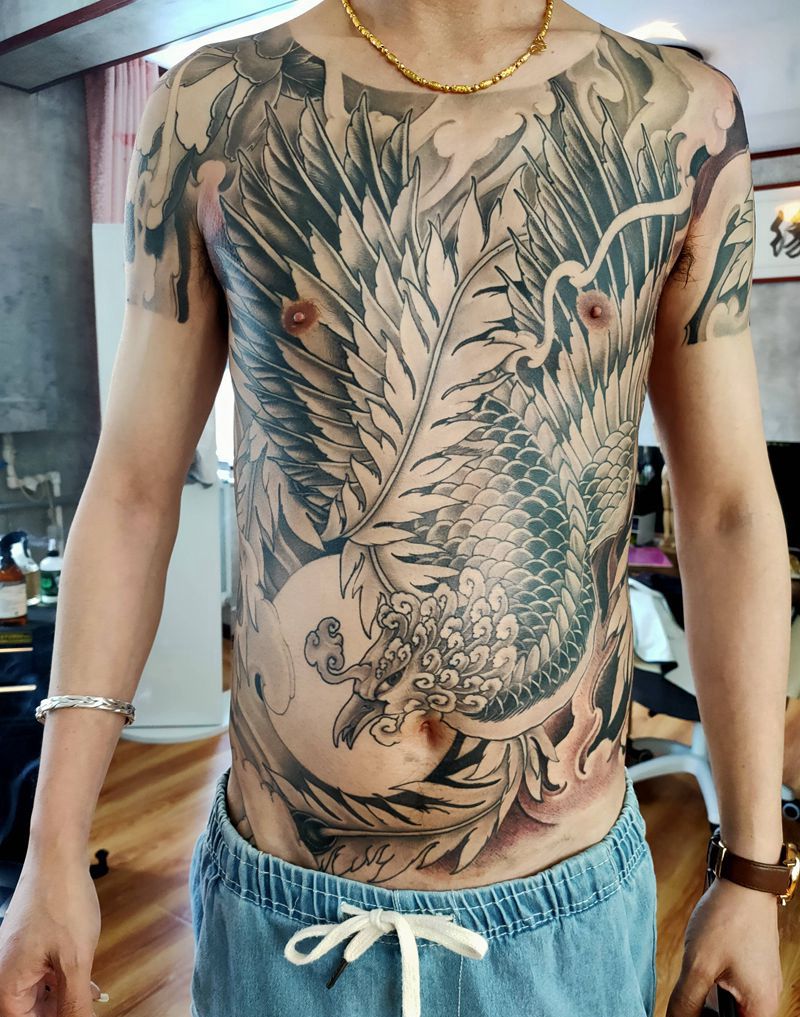 前胸 凤凰纹身图片_胸部新传统纹身图案