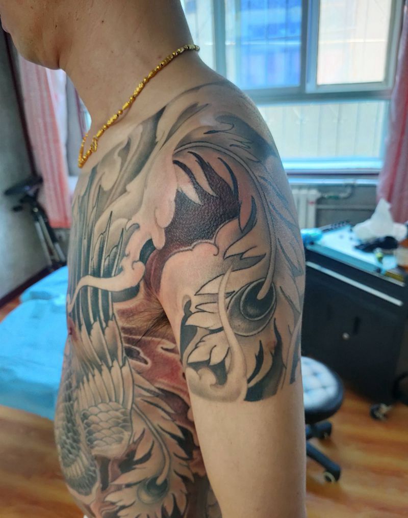 前胸 凤凰纹身图片_胸部新传统纹身图案