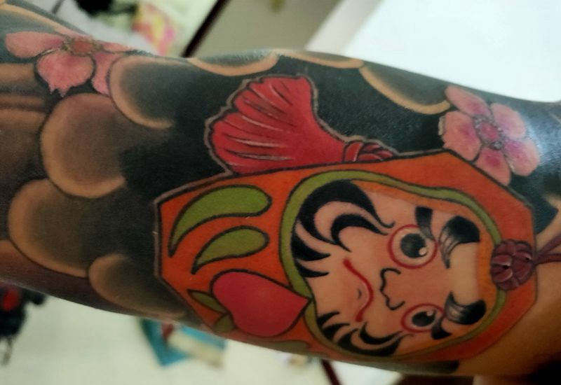 • T包小腿吹火男+阿多福纹身图片_腿部老传统新传统吹火男阿