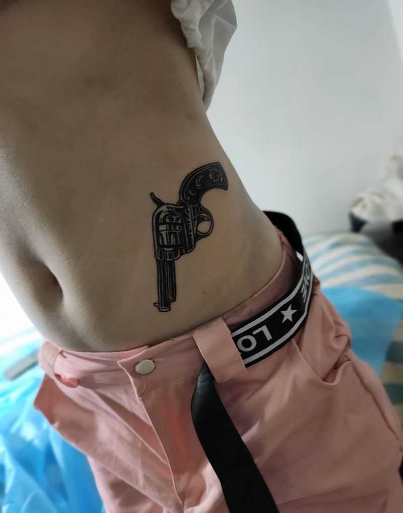 当前位置: 首页 >天津市纹身店-缘刺青纹身图案>双枪纹身图片_腹部New School纹身图案