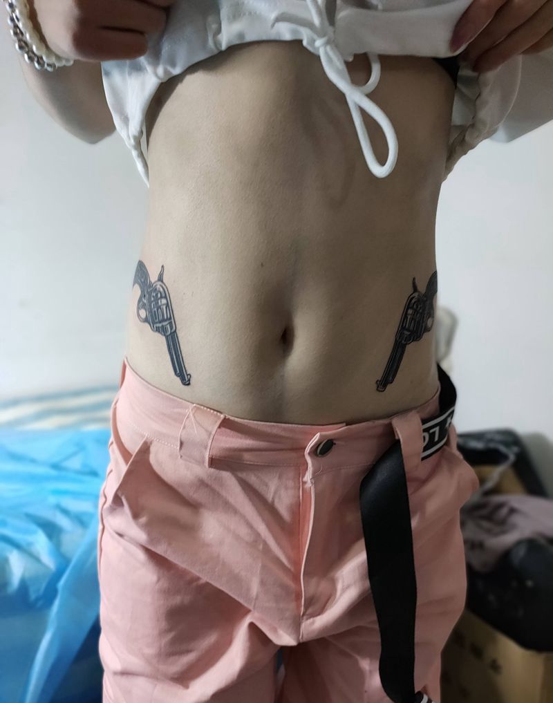 当前位置: 首页 >天津市纹身店-缘刺青纹身图案>双枪纹身图片_腹部New School纹身图案