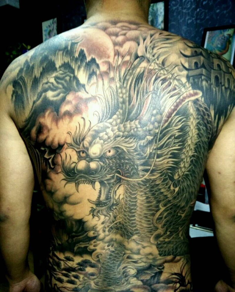 • T云龙九郎纹身图片_背部老传统云龙九郎纹身图案