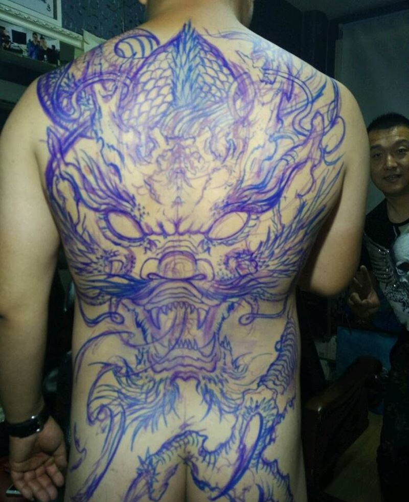• 黑灰满背纹身图案
