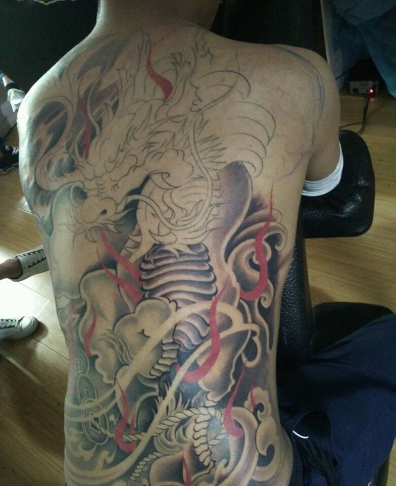 • T云龙九郎纹身图片_背部老传统云龙九郎纹身图案