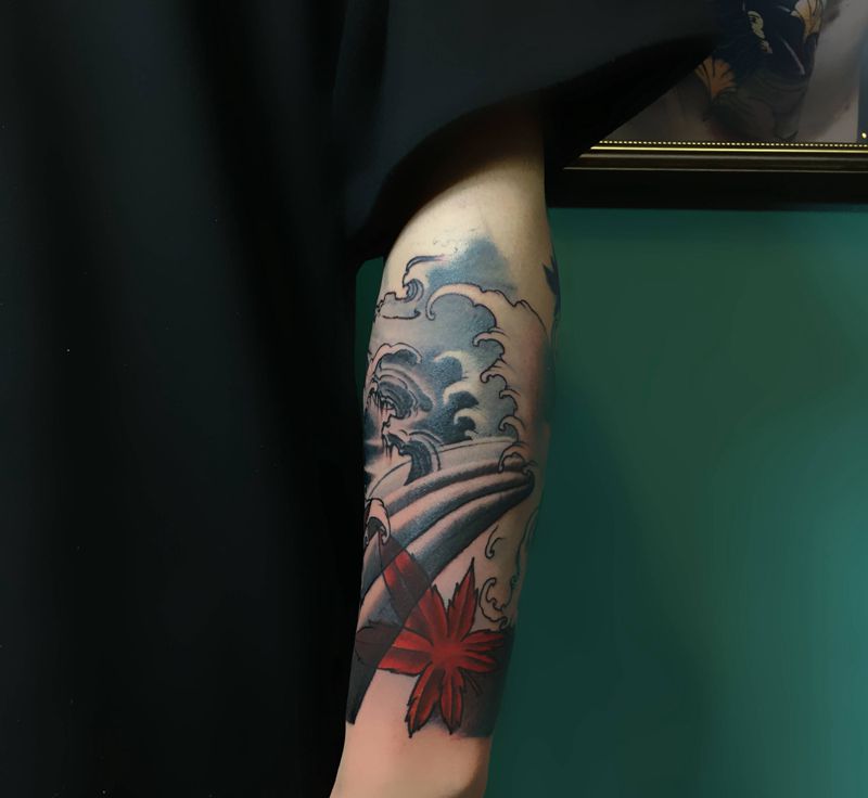 当前位置: 首页 >河北省石家庄市纹身店-林玖刺青纹身纹身图案>山水小臂新传统纹身图片_手臂新传统工笔画枫叶