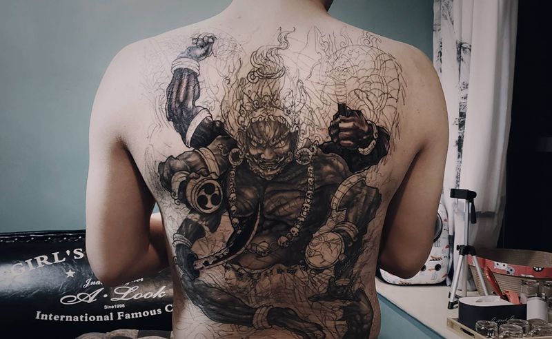 当前位置: 首页 >河北省石家庄市纹身店-林玖刺青纹身纹身图案>六臂明王遮盖纹身图片_背部新传统遮盖暴力遮盖纹身图案