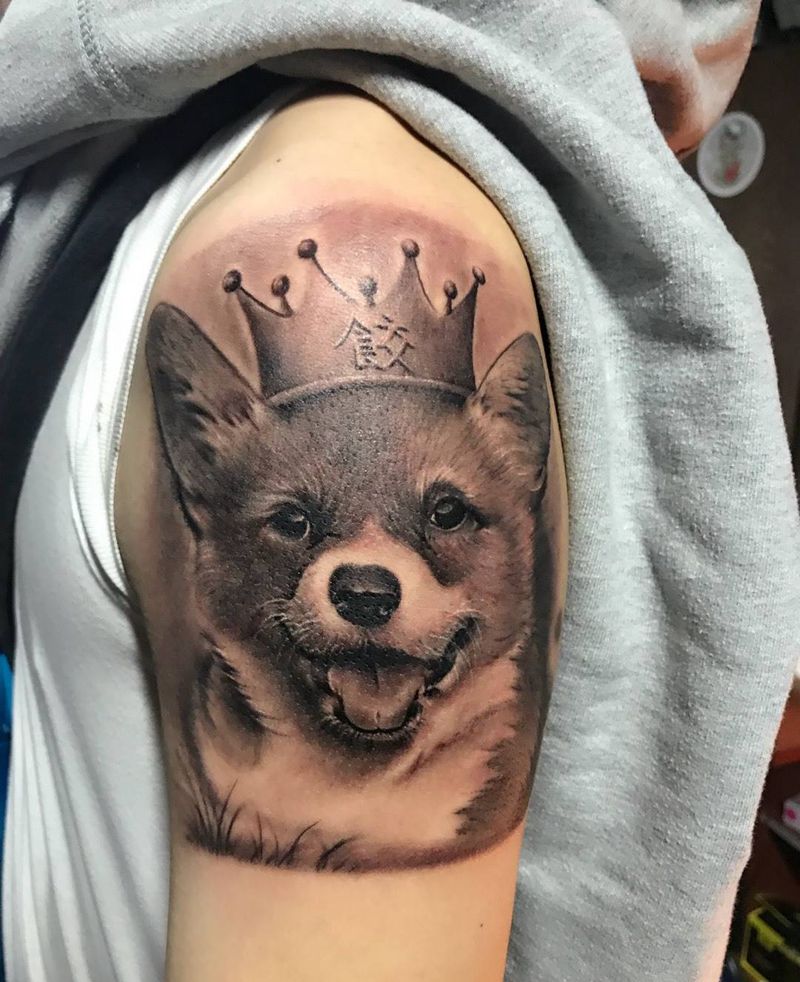 狗狗纹身纹身图片_腿部欧美写实纹身图案