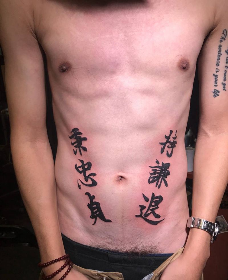 汉字书法纹身纹身图片_成品腹部腰部传统原创图腾书法纹身图案
