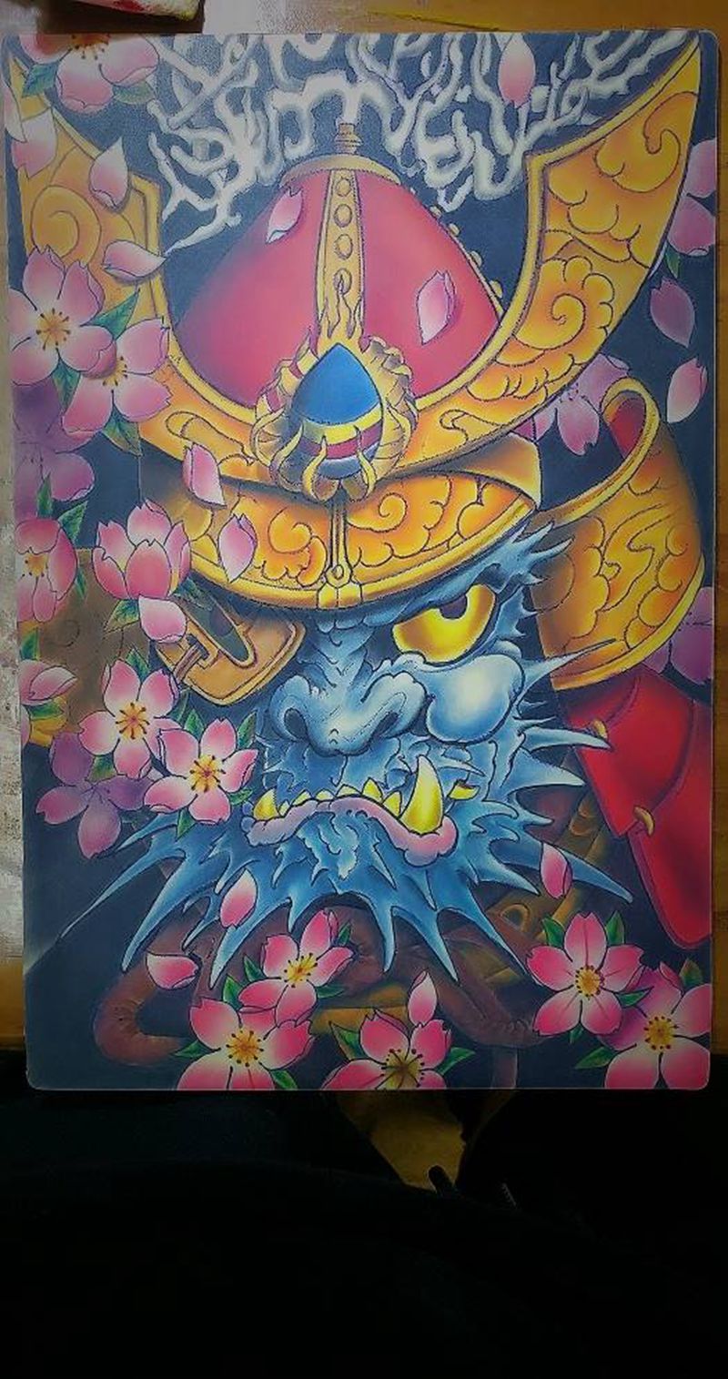 当前位置: 首页 >河北省石家庄市纹身店-林玖刺青纹身纹身图案>夜叉武士纹身图片_胸部腿部新传统水彩鬼武士夜叉纹身图案