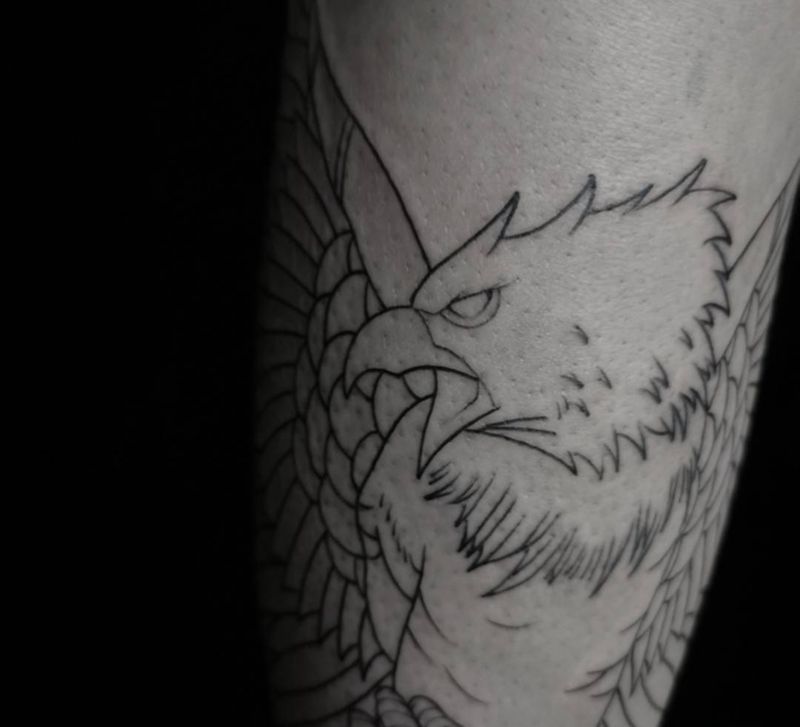 小腿鹰(未完成)纹身图片_腿部手臂欧美写实New School包小腿翅膀鹰纹身图案