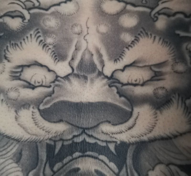 当前位置: 首页 >河北省石家庄市纹身店-合一刺青纹身图案>唐狮子花胸纹身图片_胸部背部新传统老传统唐狮子花胸纹身图案