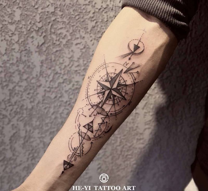 当前位置: 首页 >河北省石家庄市纹身店-合一刺青纹身图案>几何指南针纹身图片_手臂几何点刺指南针小臂纹身纹身图案